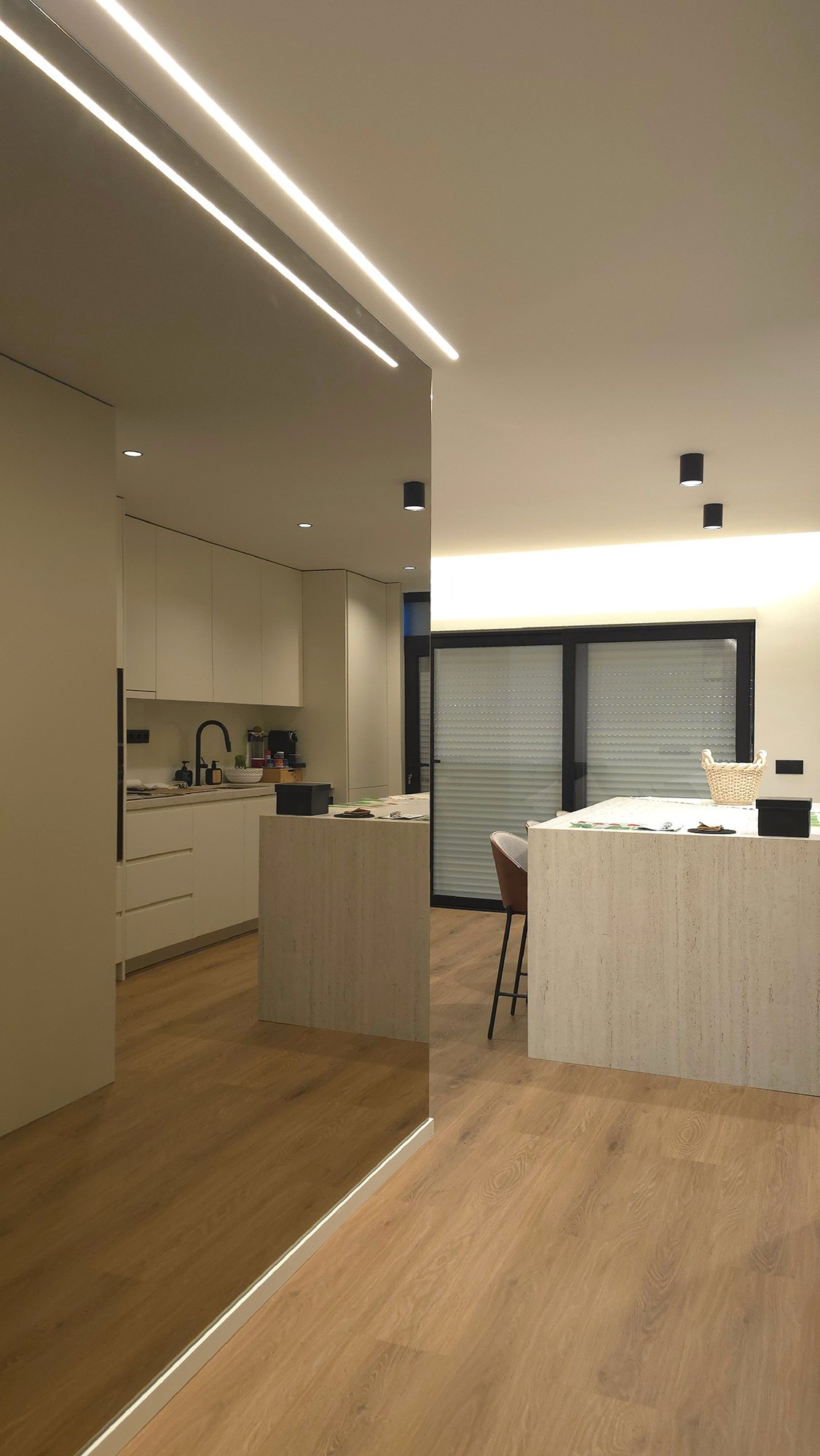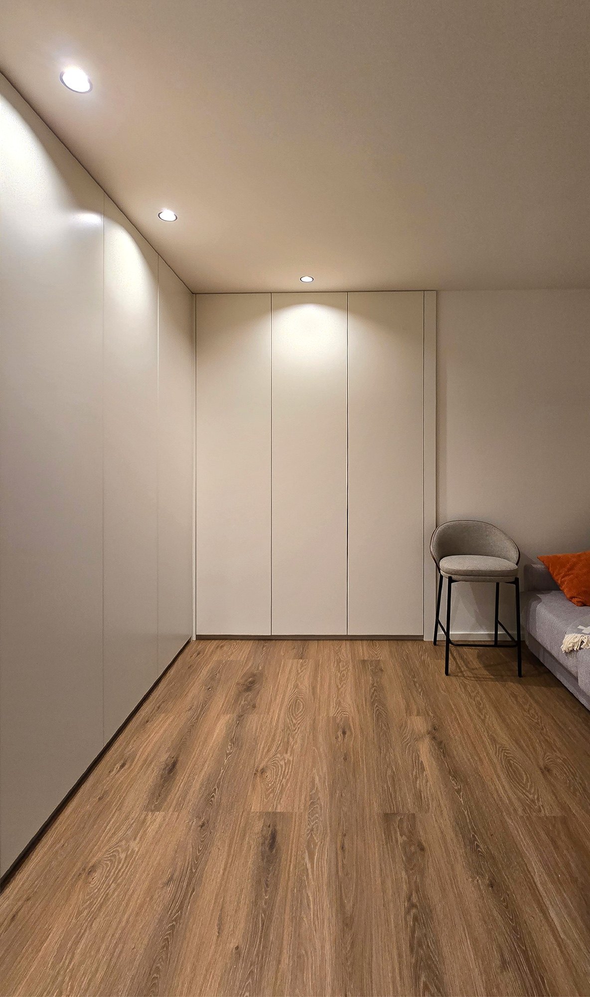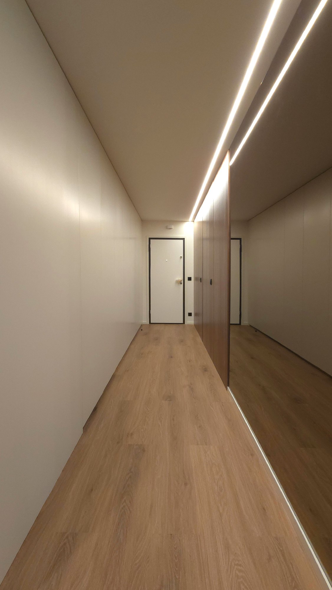 Localizado em Vila do Conde, a remodelação deste apartamento de tipologia T2 teve a como ideia base a renovação e modernização total do espaço, à qual foi revista toda a carpintaria, paineis, portas e rodapes lacado, assim como cozinha e elementos de contraste a nível de acabamento de pavimento (tom madeira natural) e ferragens, caixilharia e acessórios em preto. Por fim aproveitar a vista exterior, através dos vãos envidraçados.